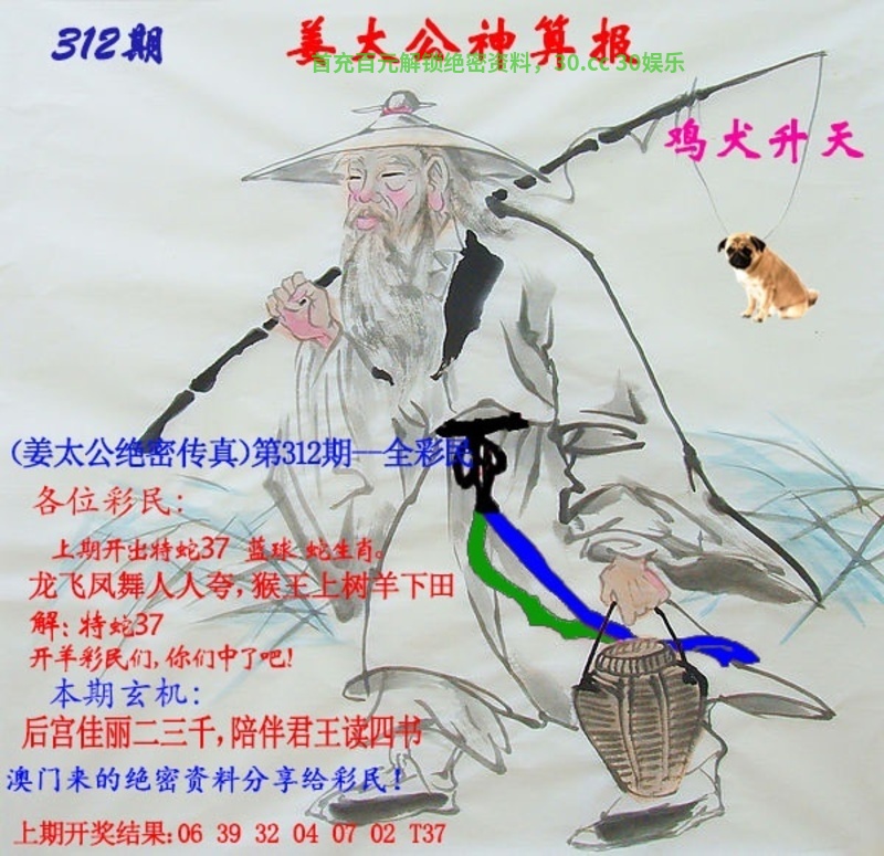 | 312期:济公特码诗 呈峤献嵋流动情,毒辣透顶性凶残。 解:虎猴蛇马鼠羊。 活佛赠语:【快快活活】 解:龙 七肖:虎猴蛇马鼠羊龙 |